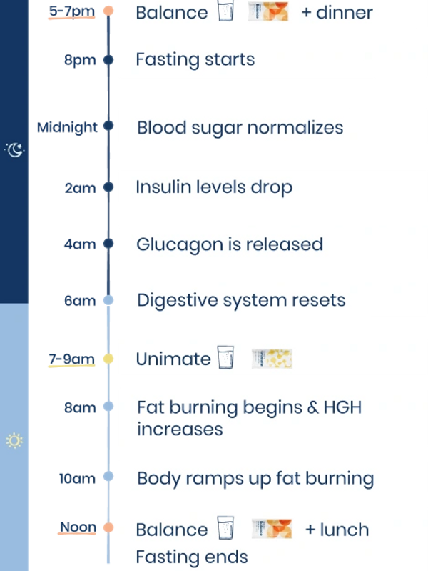 Unimate and Balance work together to help you extend the time between dinner and your first meal of the following day.